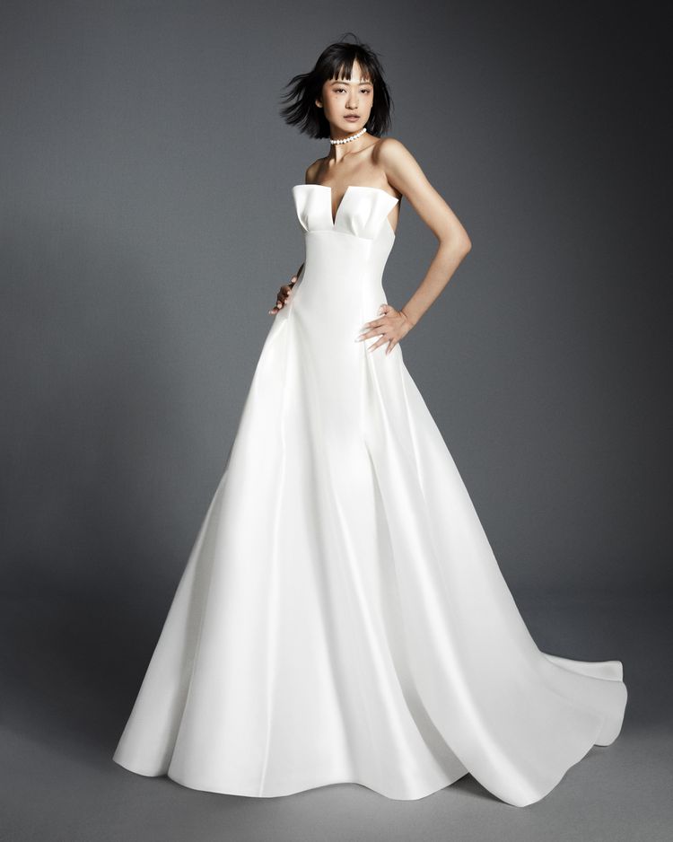 Kavisli yaka hatları – ki buna “tatlıkalp” yaka diyoruz – bu sezon Bridal Moda Haftası’ndaki birçok koleksiyonda göründü. Prea James ve THEIA gibi tasarımcılar, geleneksel tatlıkalp siluetinin modern bir yorumunu sundu. Bu, diğerlerinden farklı bir gelinlik arayanlar için göz önünde bulundurulması gereken bir trenddir.