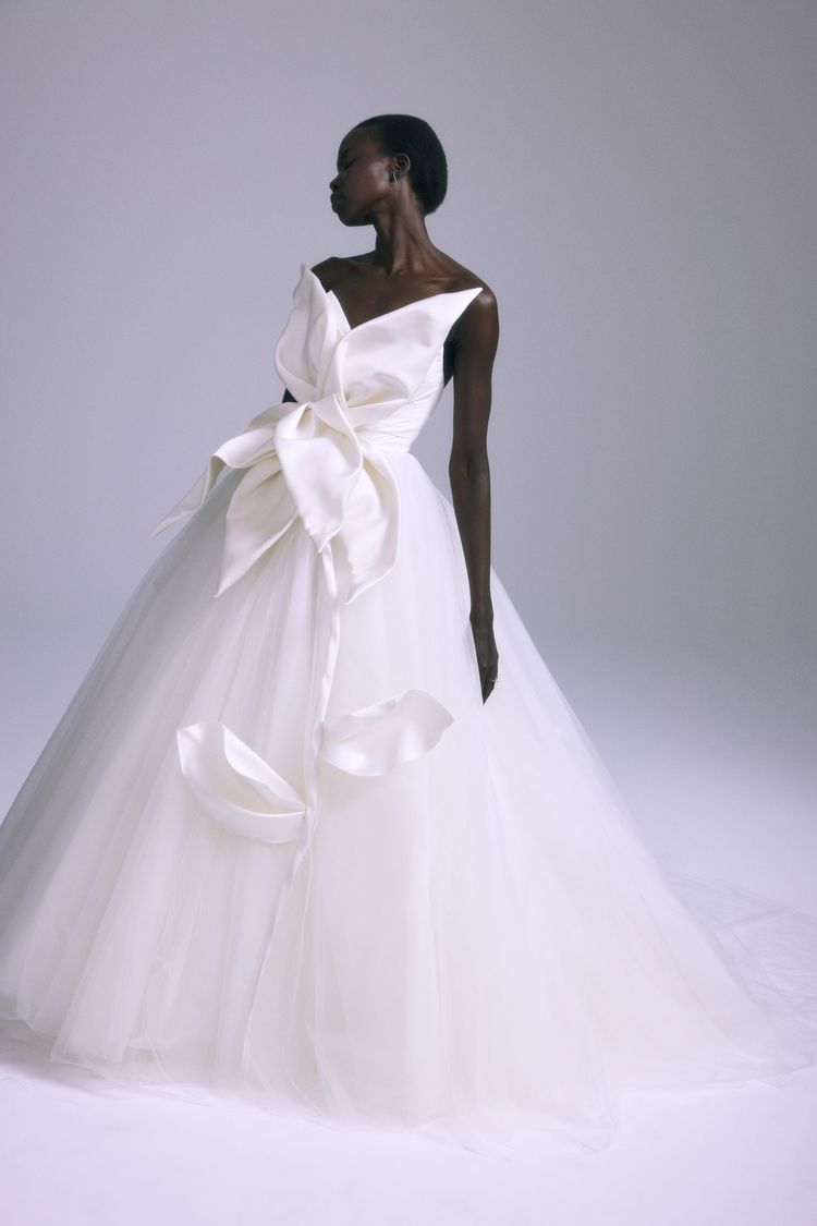 Geçmişteki trendlerin çağdaş düğün modasında görünmesi olağan bir şey olduğundan, bu Sonbahar 2024 sezonunda 80’lerin belirgin omuzlarının yeniden ortaya çıkması şaşırtıcı olmadı. Bazı tasarımcılar bu 80’ler tarzı temel üzerine modern bir dokunuş koyarken, özellikle Julie Vino’nun yapılandırılmış, sivri omuzlu yorumunu ve Scorcesa’nın modern, şişme omuzlu varyasyonunu beğendik.