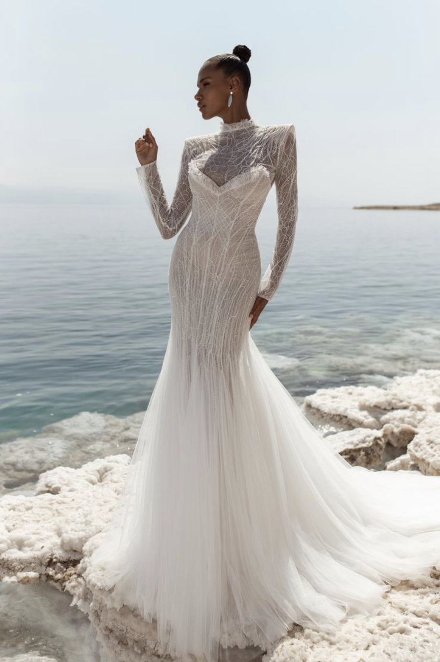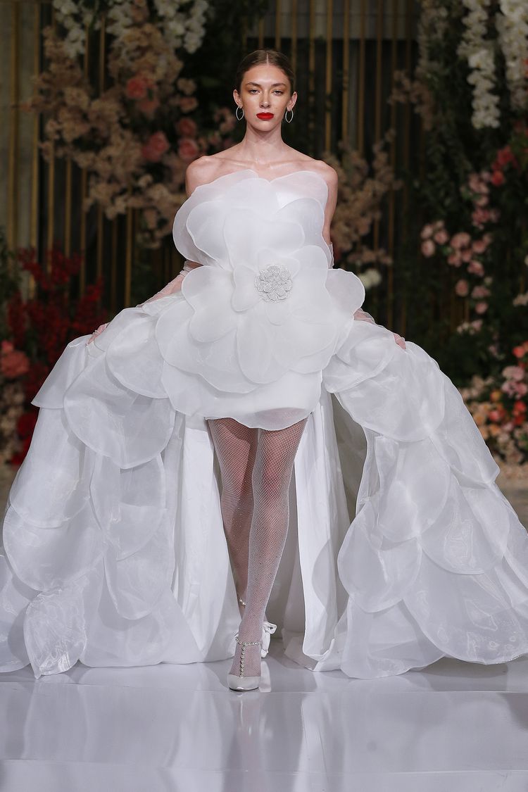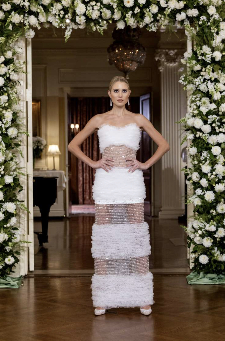 Son olarak, tasarımcıların, şeffaf gelinlik trendine yeni bir yaklaşım getirerek, görünür veya pırıltılı panellere sahip elbiseler ürettiği şekilde bu stile yeni bir bakış açısı getirmesini seviyoruz. Daha spesifik olarak, hem Honor hem de Nardos, bu stili daha romantik veya gösterişli olmalarına bakılmaksızın tüm estetiklere hitap edebileceğini gösterdiler.